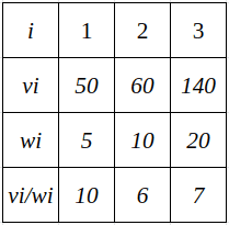 배낭의 용량이 30일 때, 무게 대비 가치가 1번, 3번, 2번 물건순으로 높으므로 1번과 3번을 넣고 2번은 5만큼의 무게만 집어 넣으면 된다.